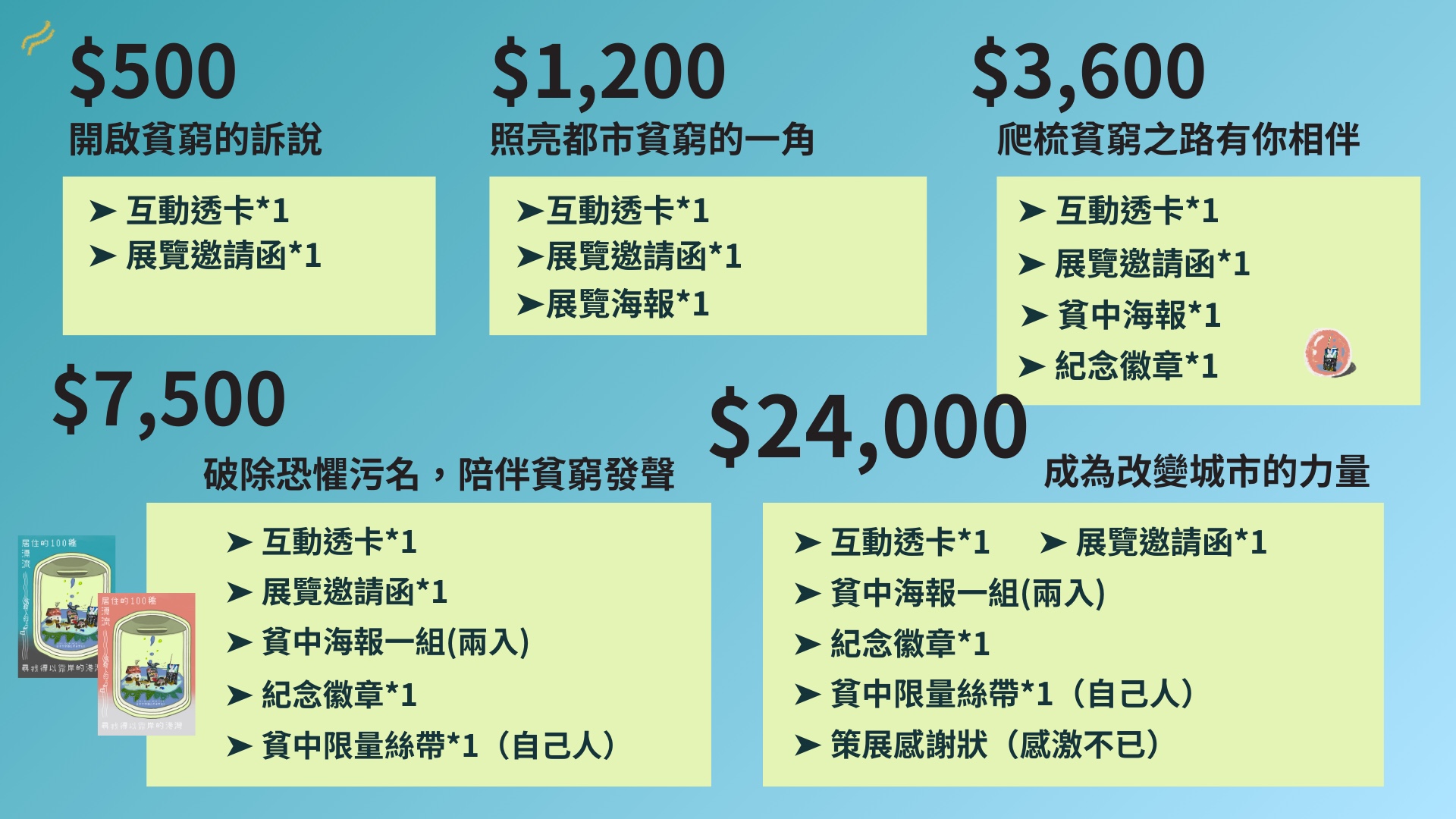 - 為貧窮者,破除污名、練習發聲——『身處貧窮的人,長久以來被社會貼上污名和標籤,他們變得沈默,為了保護自己而將自己隱藏,但他們確實存在在我們的生活之中,這次我們可以選擇不再忽視。』